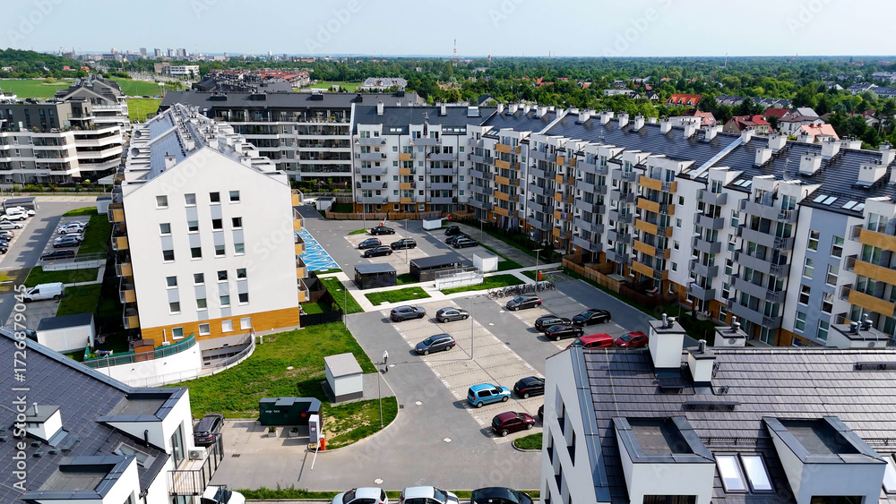 city ​​street New modern district architecture housing construction Wroclaw Poland #1726879045