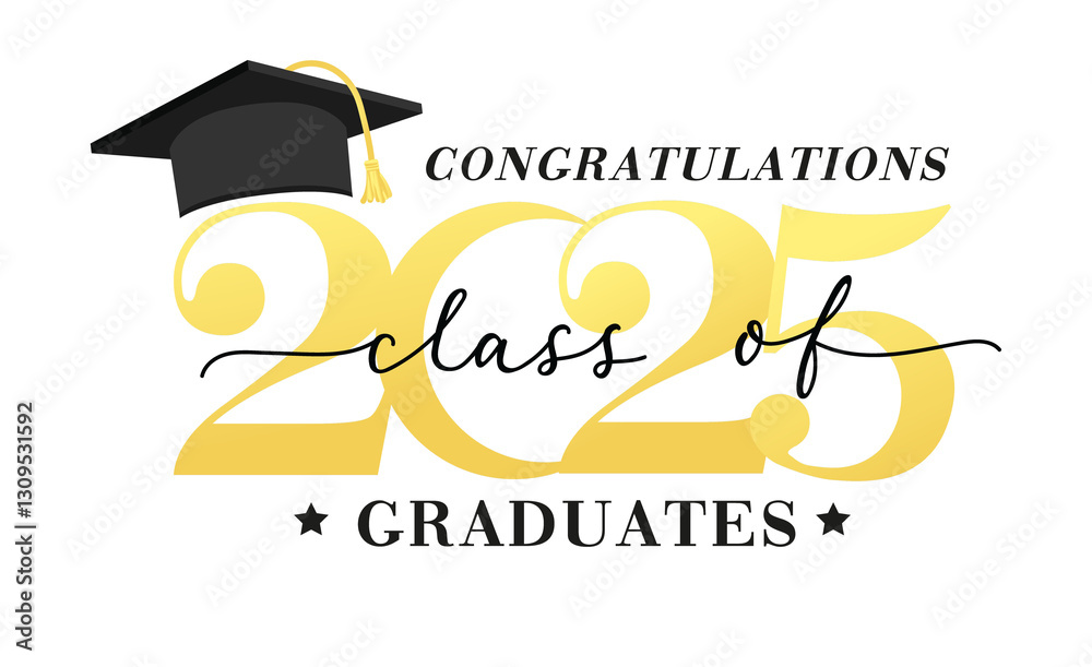 Class of 2025 vector illustration. Festive celebration design for graduation events and announcements. Congratulations graduates design template for social media posts to honor graduates. #1309531592