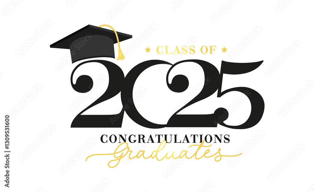 Class of 2025 vector illustration. Festive celebration design for graduation events and announcements. Congratulations graduates design template for social media posts to honor graduates. #1309531600