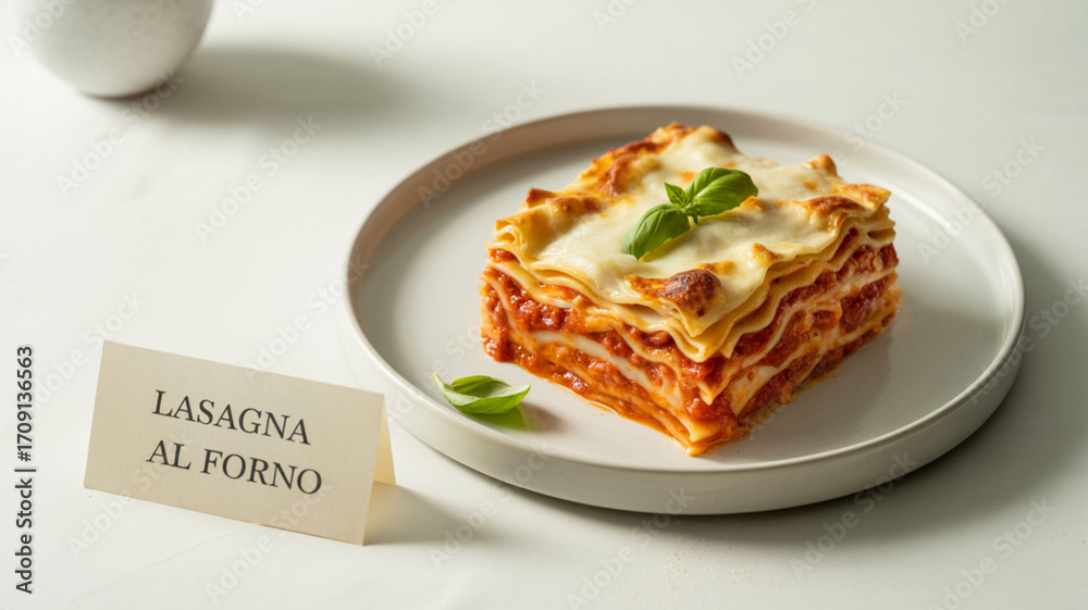 Classic Italian Lasagna al Forno with Golden Mozzarella #1709136563
