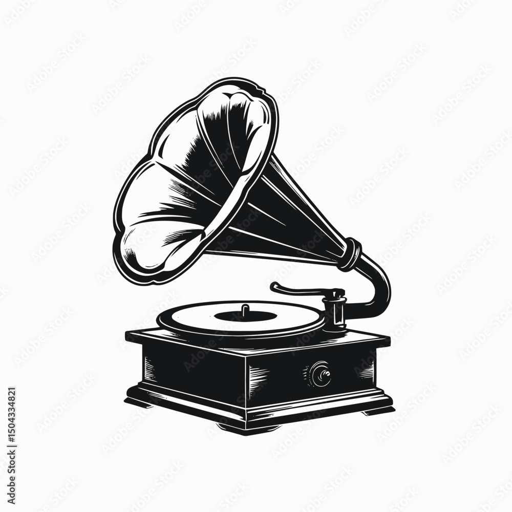 Classic record player antique phonograph vintage music audio silhouette #1504334821