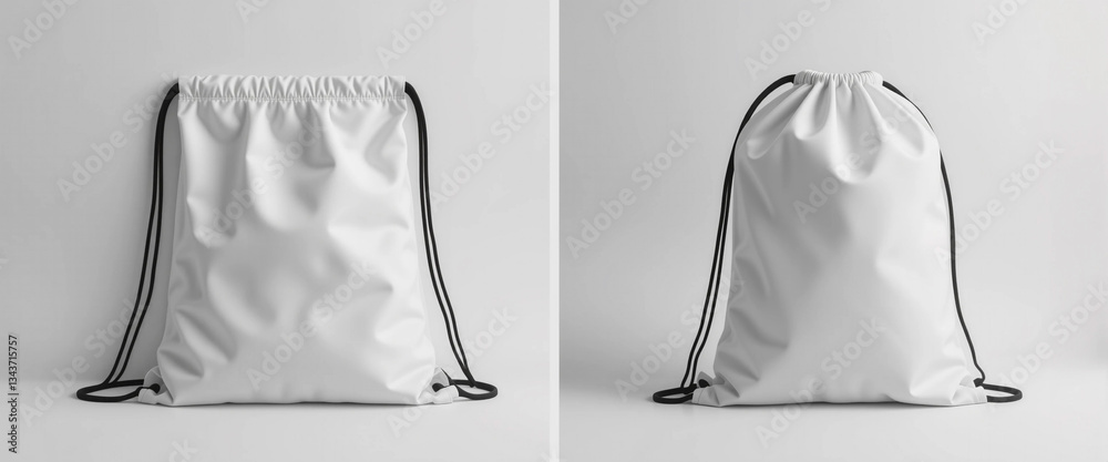 Classic white drawstring bag mockup – gym, sports, travel pack template. #1343715757