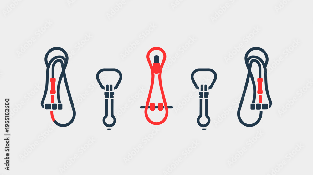 Climbing gear vector illustration, carabiners and ropes, in red and dark blue #1955182680