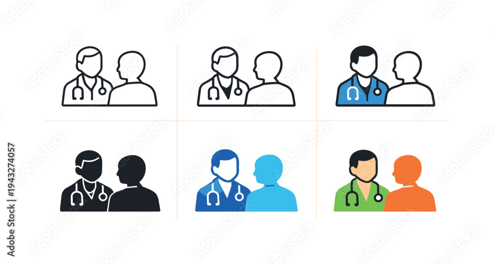 Clinical consultation icon depicting a doctor with a stethoscope talking to a patient, symbolizing medical advice, health #1943274057