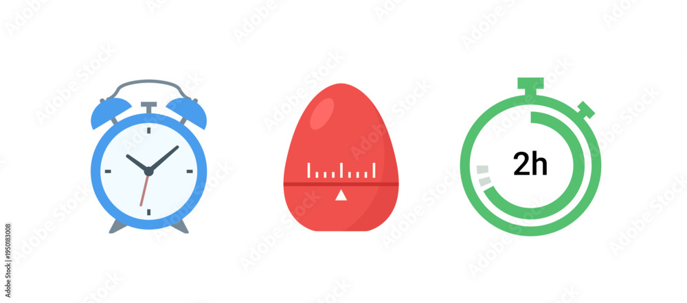 Clock stopwatch vector icon set. Alarm stop watch flat symbol logo sign. Timer clock icon #1950183008