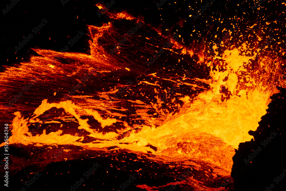 Close-up exploding lava - Erta Ale Lava Lake after sunset, Danakil Depression, Afar Region, Ethiopia #512504744