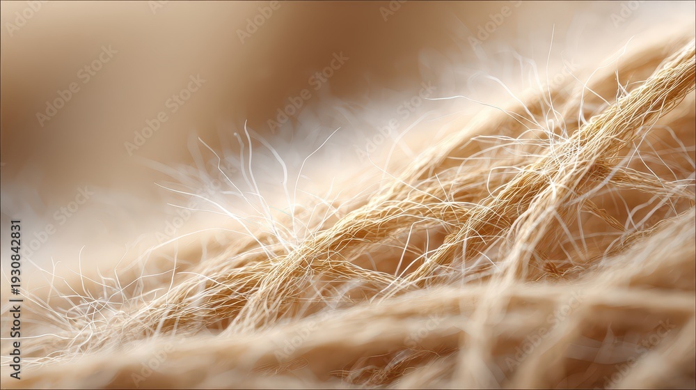 Close-up Macro of Dry Straw Fibers Creating Warm Beige Texture #1930842831