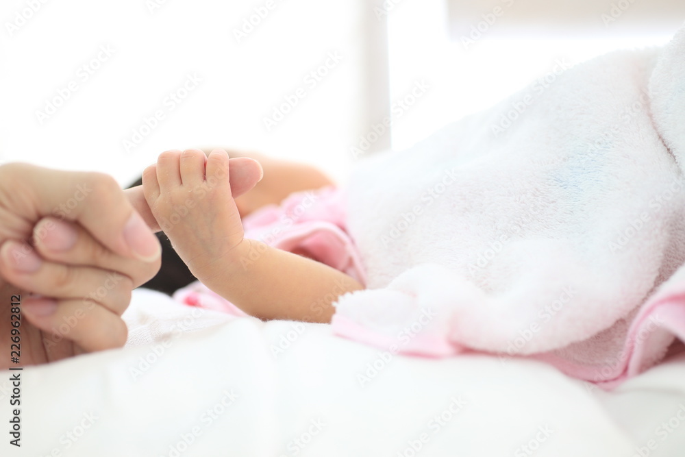 close up new born baby's small hand. baby holding on to her mother's Finger. #226962812