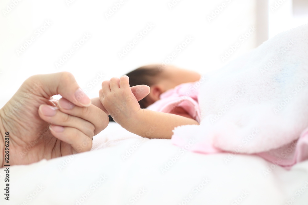 close up new born baby's small hand. baby holding on to her mother's Finger. #226962816