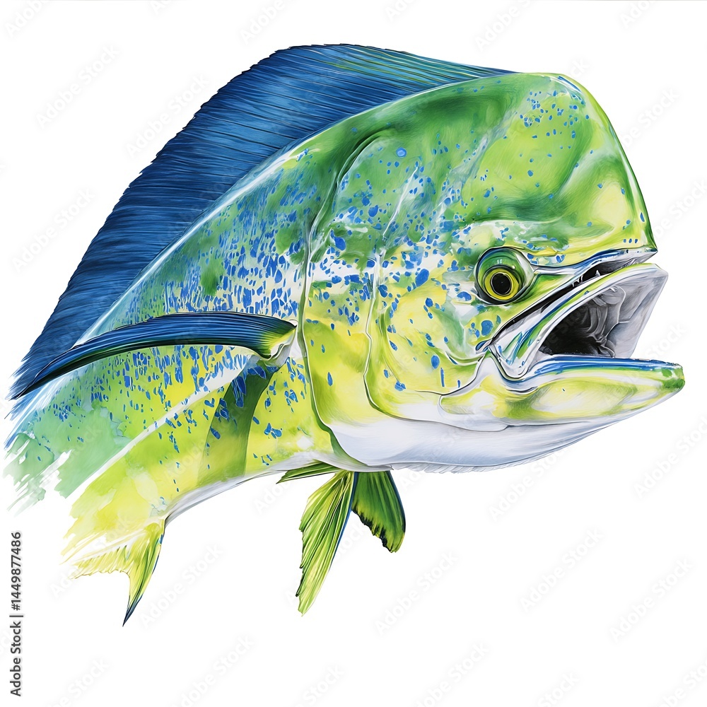 Close up of a Mahi Mahi, vibrant tropical fish illustration. #1449877486