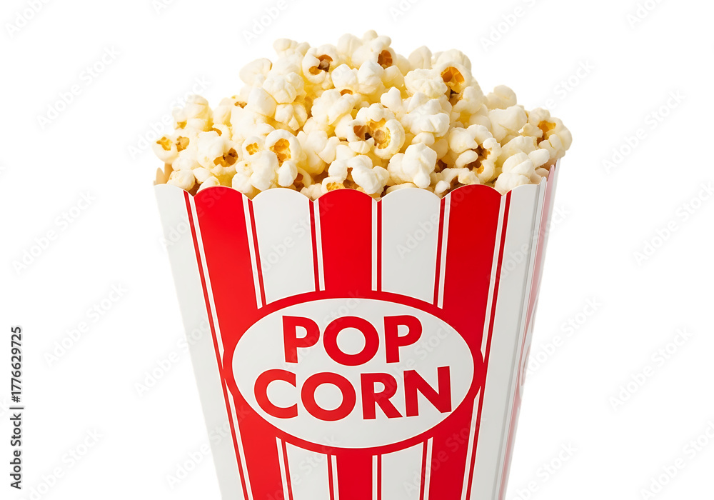 Close up of a red and white striped popcorn bucket on transparent background #1776629725
