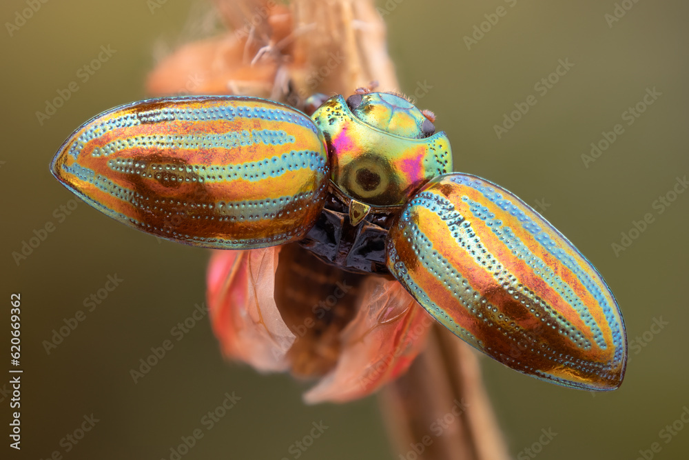 close up of a rosemarry beetle with wide open hard wings. open elytra. #620669362