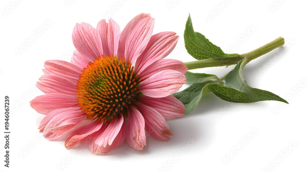 Close-up of a Single Pink Echinacea Flower on a White Background. #1946067239