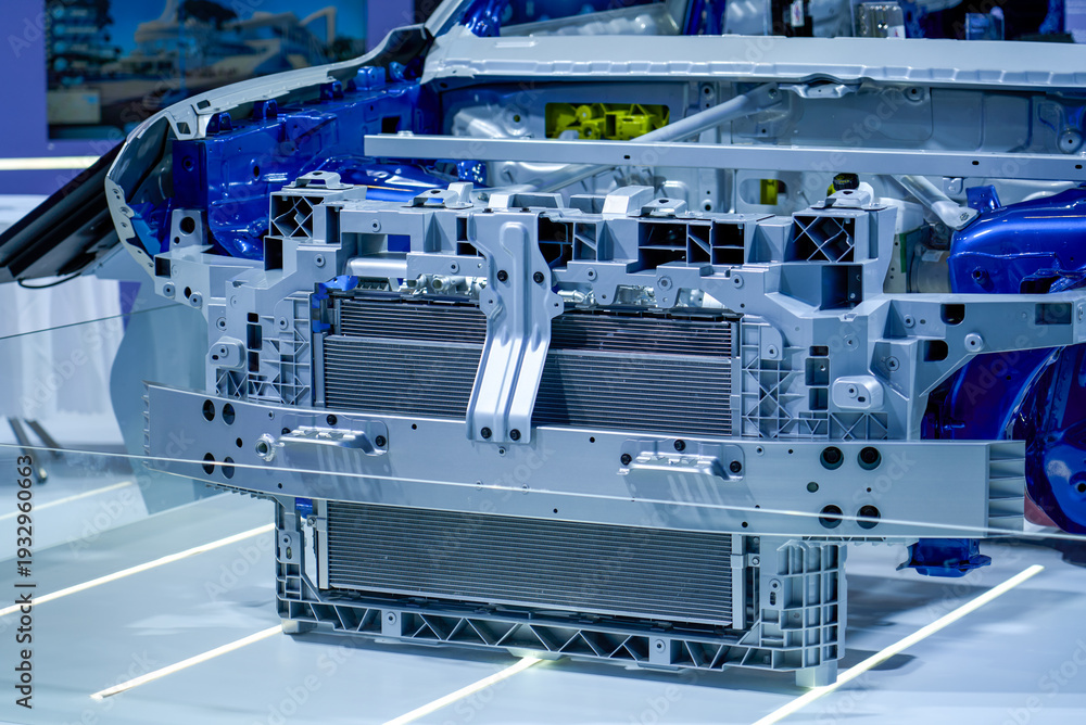 Close-up of car body-in-white steel frame used for technology demonstration #1932960663