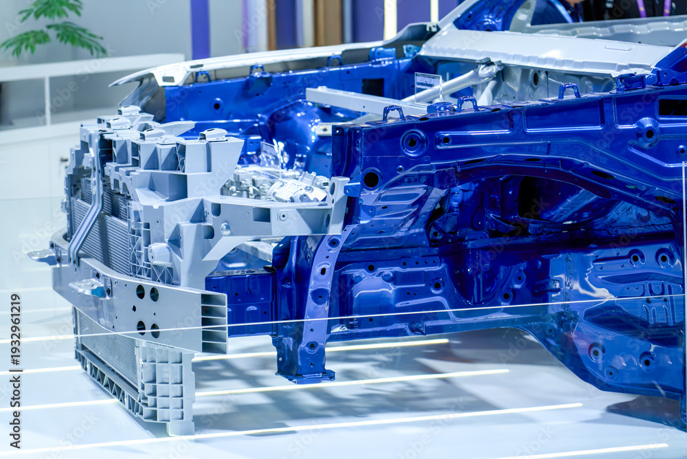 Close-up of car body-in-white steel frame used for technology demonstration #1932961219