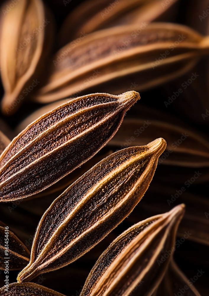 Close-up of caraway seeds, a popular spice used in cooking. #961454616