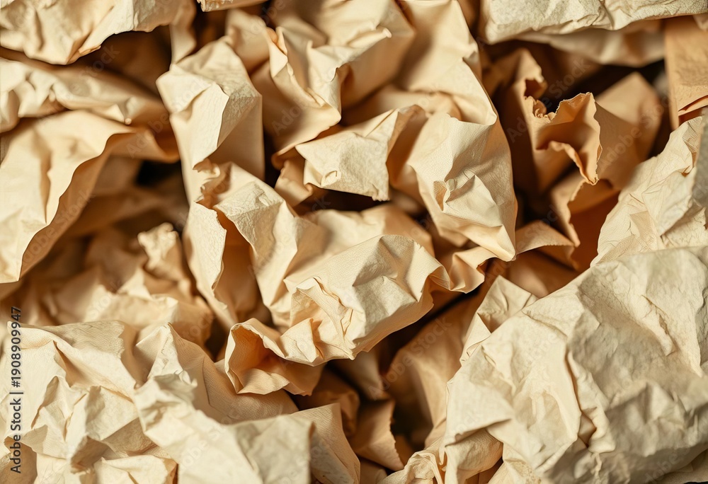 Close-up of crumpled cardboard and paper ready for recycling, white, closeup #1908909947