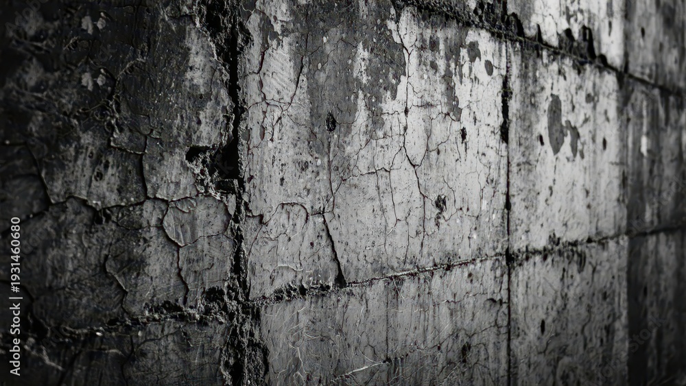 Close-up of dark gray concrete wall texture, interwoven with cracks and mottled texture, presenting a rough industrial-style visual effect, making it a material image suitable for background and textu #1931460680