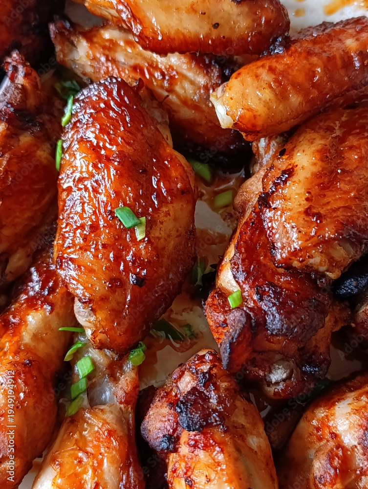 Close-up of grilled chicken wings sprinkled with green onions #1949194912