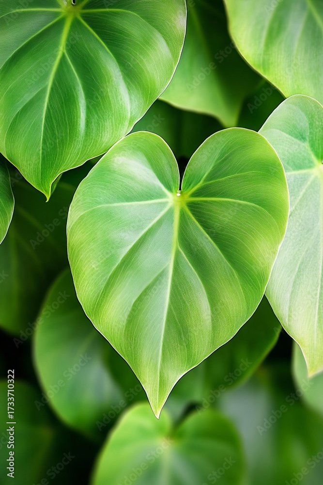 Close-Up of Lush Green Philodendron Leaves Showcasing Their Natural Beauty and Vibrant Freshness #1733710322