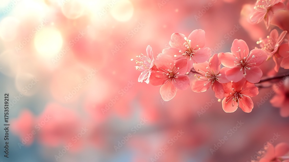 Close up of pink flowers blooming on a branch outdoors #1753519212