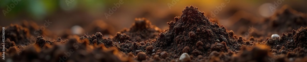 Close-up of rich, dark brown earth, textured and fertile, representing the nurturing abundance of a goddess of nature , shades, Demeter #1523160548