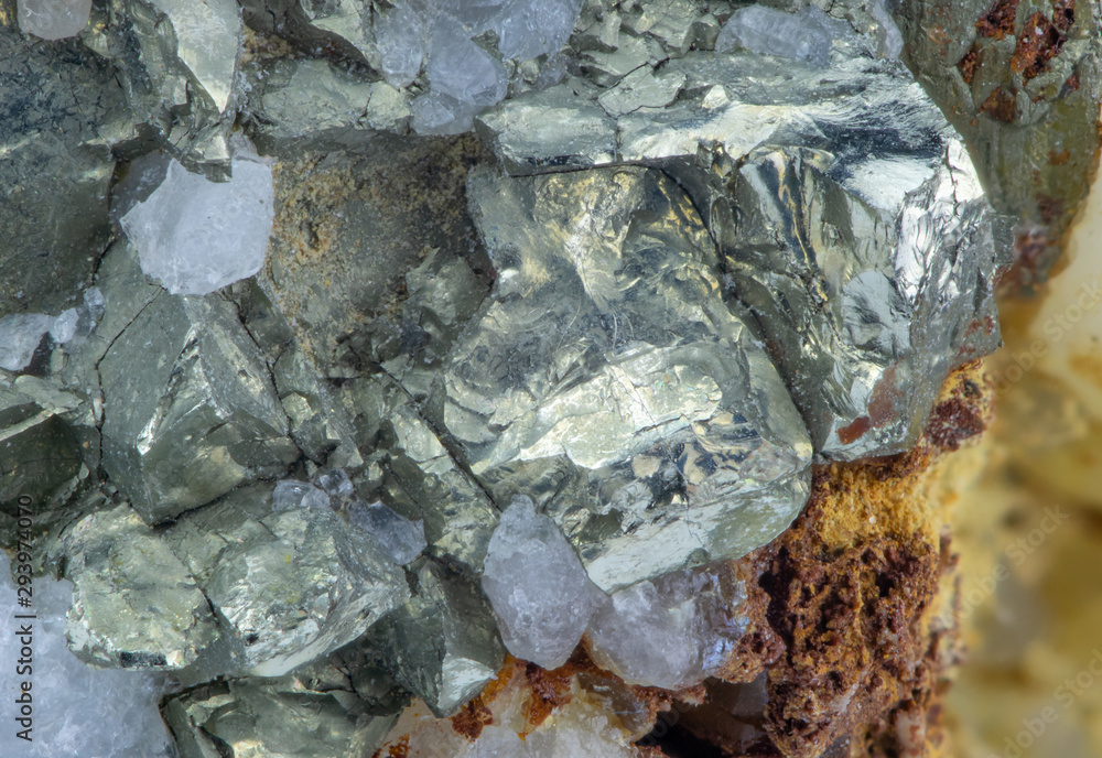 Close up of silver ore with quartz. Concept: mineralogy and mining #293974070