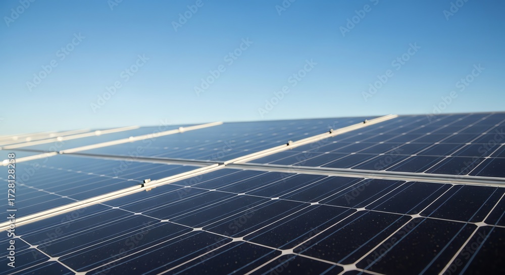 Close-up of Solar Panels Reflecting Clear Blue Sky on a Sunny Day #1728128258