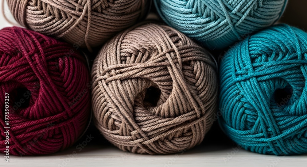 Close up of Stacked Colorful Yarn Balls for Knitting Crochet and Craft Projects #1775909257
