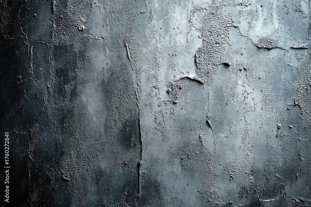 close-up of textured cracked dark gray and black weathered wall surface with peeling layers and rough uneven patches #1760272841