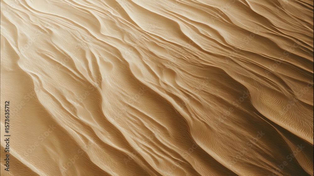 Close-up of textured sand dunes with natural, flowing patterns created by wind on a desert surface. #1573635712