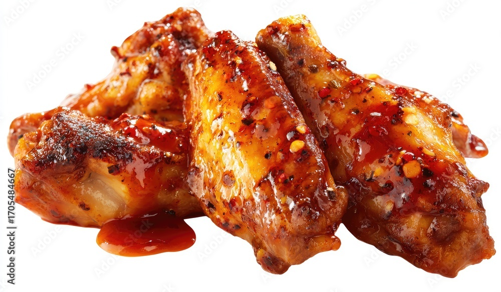 Close-up of three saucy chicken wings #1705484667