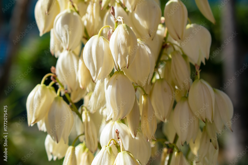 Close up of white yucca flowers in bloom, Thailand. #1772075475