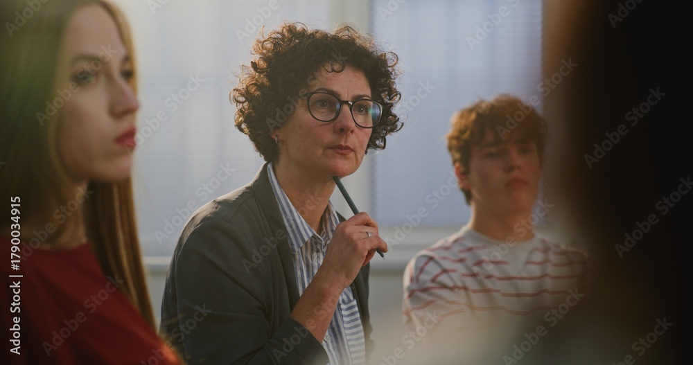 Close Up Teacher Encourages Teenage Students Express Emotions and Thoughts During Mental Health Discussion. Concept Psychological Wellbeing, Open Dialogue, and Emotional Literacy in Schools. Portrait. #1790034915