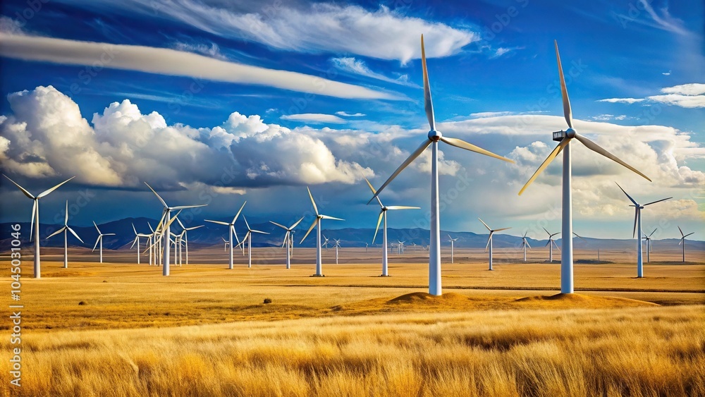 Close-up view of wind turbines on the eastern prairie of Colorado #1045031046