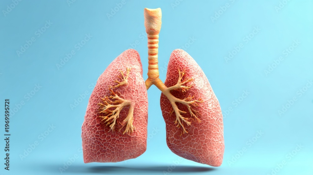 Close view of human lungs with bronchi and alveoli on light blue background #1969595721