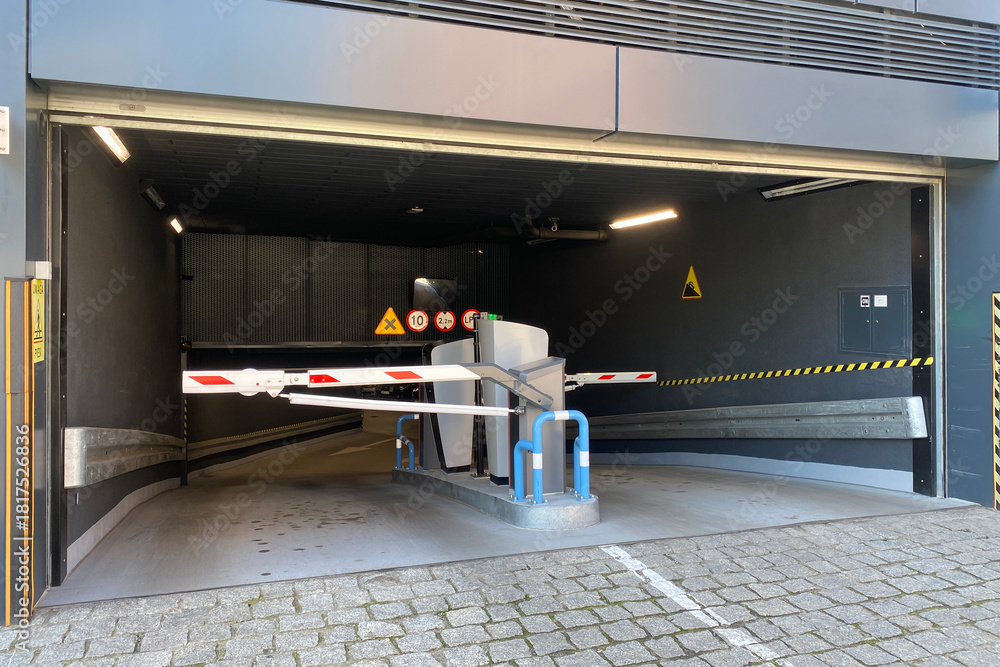 Closed barrier at the entrance to the underground parking #1817526836