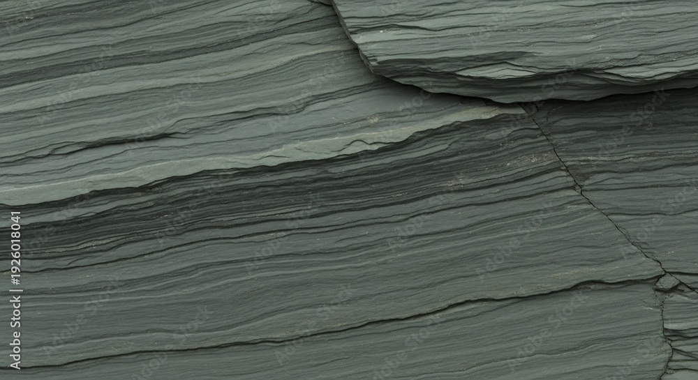 Closeup of layered green slate rock texture with natural striations. #1926018041