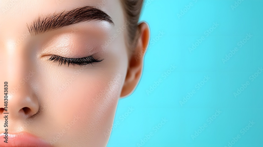 Closeup of patient s eyes during a delicate fat transfer procedure for under eye rejuvenation maintaining a professional and sterile medical environment with copy space for text overlay #1483043830