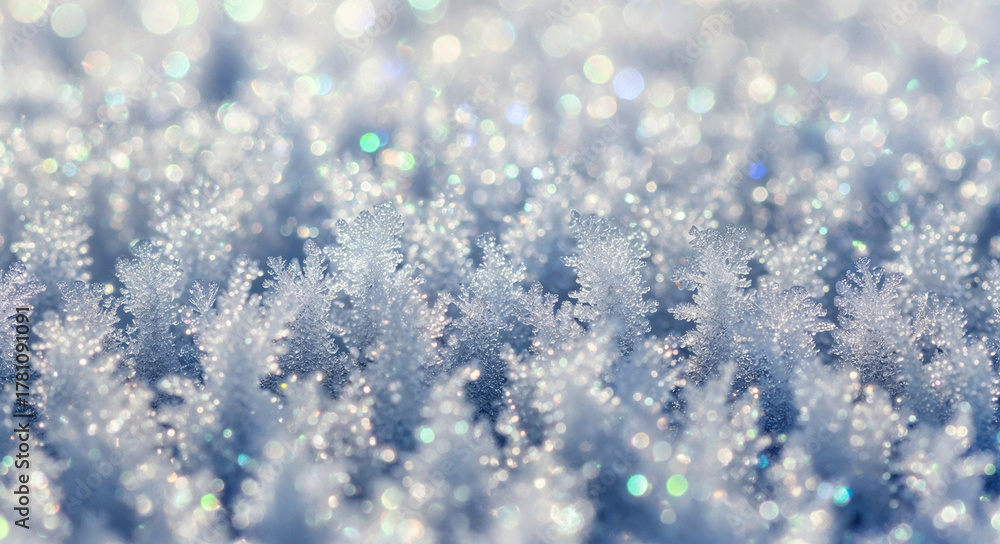 Closeup of sparkling frost on snowy ground in winter light #1781091091