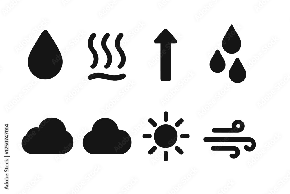 Cloud Formation Icons. Cloud Formation. Filled icon set of Cloud Formation: water droplet, evaporation symbol, #1750747014