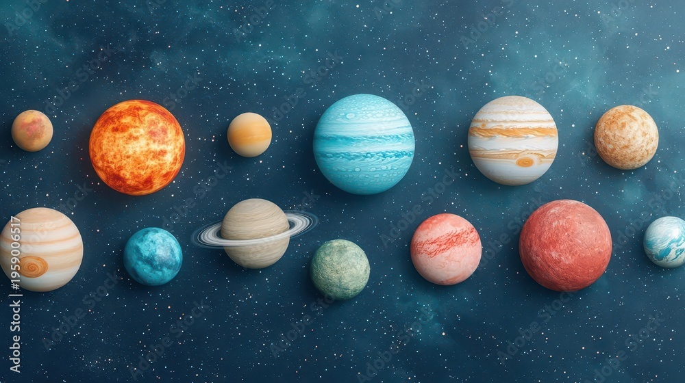 Cluster of planets orbiting within vibrant nebula gas field, rich scifi composition #1959006517