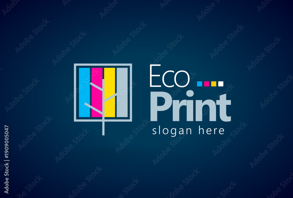 Cmyk Logo. Tree and Leafs Printing theme. Template design vector. Black background #1909005047