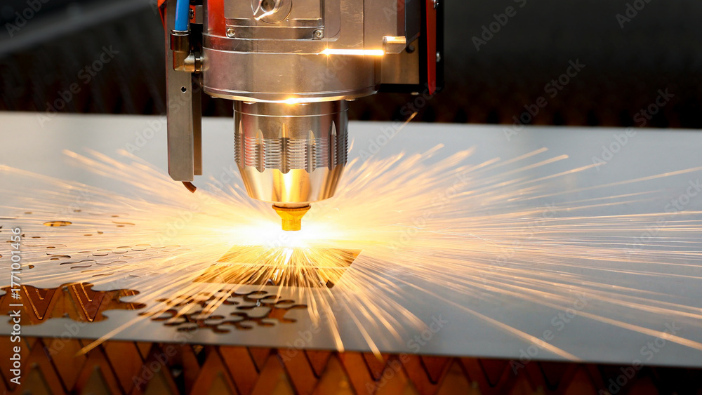 Cnc milling machine. Processing and laser cutting for metal in the industrial. Motion blur. Industrial exhibition of machine tools. #1771001456