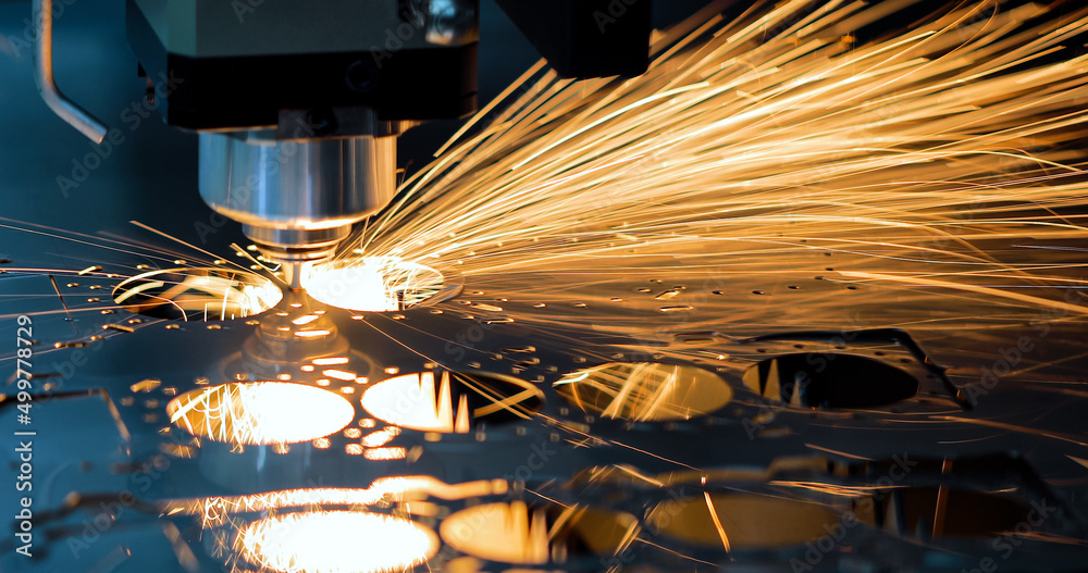 Cnc milling machine. Processing and laser cutting for metal in the industrial. Motion blur. Industrial exhibition of machine tools. #499778729