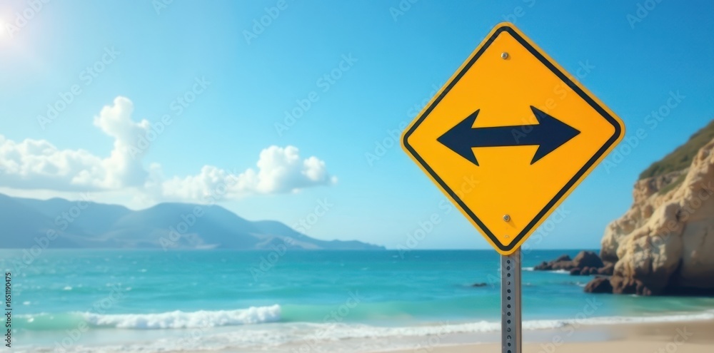 Coastal highway sign with directional arrows pointing left and right , indicator, brown #1651190475