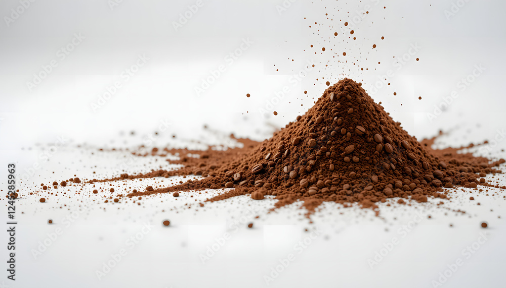 Coffee grinded with coarse to fine level. Isolated grind coffee in white background. Pile of coffee powder #1245285963