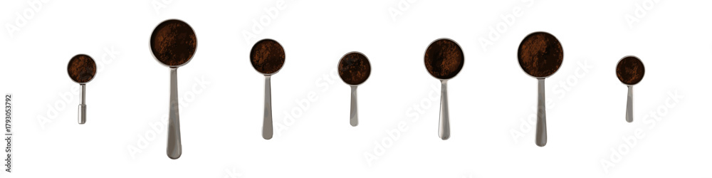 Coffee scoop icon set. Coffee spoon vector set. Coffee scoop collection with different sizes for ground coffee and brewing tools. #1793053792
