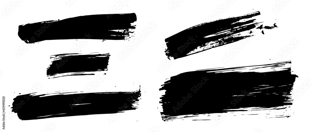 Colección de formas hechas con pintura negra, trazos gestuales reales hechos a mano con formas cuadradas y rectangulares, conjunto de recursos de trazos vectoriales con espacio para textos #639490028