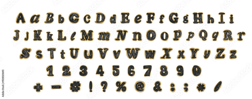 Collage font letters set, ransom note style alphabet collection, numbers, punctuation marks. Grunge cut out anonymous elements for scrapbook. Vector illustration #1928020645